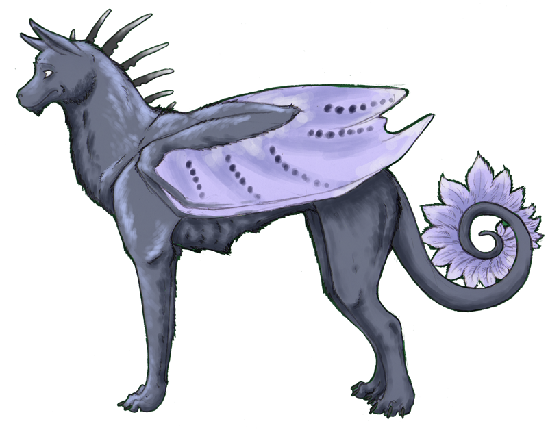 | Appearance | Somewhat smaller then average for her species, Athnai stands just a little over 7 foot tall at her shoulder, and while she is a little self-conscious about the point she is slowly coming to accept that is something she cannot change about herself. Just like she cannot change the somewhat 'plain' colour of her wings. A subtle pale blue colour, they are far less extravagant then some of her species, and as a younger self this bothered her - it has since grown on her, and she genuinely likes the colour - although she still recognises that by comparison to some she's a little plain. |